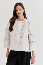 Куртка полуприлегающего силуэта на молнии, закрытой декоративной планкой на кнопках. Оригинальная отстрочка, декоративная пряжка, карманы на молнии. Капюшон отстегивается. Утеплитель холкон (см.описание) (см.описание), плотность 150. Длина изделия по спинке 66 см, длина рукава 64 см.