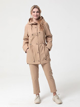 Куртка женская свободного силуэта, застежка молния, рукав втачной с манжетом на резинке, на полочке подрез с карманом. Куртка на подкладке, с капюшоном, по низу куртки и на капюшоне кулиска.