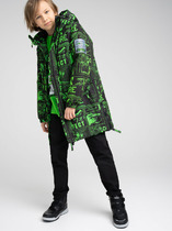 Утеплённая стеганая куртка с капюшоном для мальчика изготовлена из водонепроницаемой ткани, которой не страшны мелкий дождь, туман и сырость. Модель утеплена синтепоном (вес 200 гр/м2). Рекомендованный температурный режим от +10 до -10 градусов. Подкладка выполнена из стандартной гладкой подкладочной ткани. Спереди расположена застёжка на молнию с внутренней ветрозащитной планкой и защитой от защемления подбородка. Несъёмный капюшон с утяжкой и фиксаторами защитит ребенка от ветра и непогоды. Спереди располагаются два кармана на молнии, позволяющие держать нужные мелочи под рукой. По низу куртки расположена утяжка с фиксаторами для предупреждения продувания. Низ рукавов с трикотажными манжетами, обеспечивающими плотное прилегание и сохранение тепла. Принт в виде ярких мазков краски делает модель необычной и стильной. Рост модели 141 см, размер на модели 140.