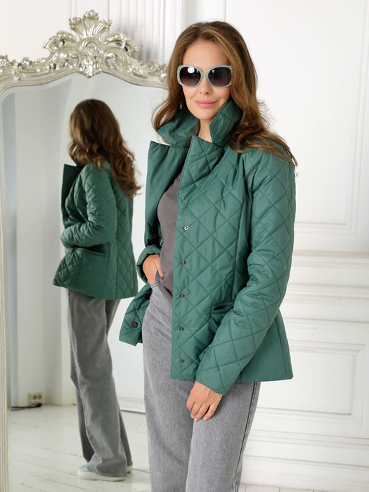 Демисезонная куртка-жакет полуприлегающего силуэта с втачными рукавами подойдет для женщин и девушек любого возраста.  Застежка на кнопки.  Воротник по типу английского (с лацканами) позволяет фантазировать с образом, используя платки, шарфы и, ставшие трендовыми, съемные капюшоны. Прорезные карманы могут вместить не только " мелочевку", но и мобильный телефон. Есть внутренний кармашек на молнии. Этот  легкий жакет из "стежки" выручит Вас на прогулке, на отдыхе и в городе.  Плащевая ткань имеет водоотталкивающую пропитку, которая выдержит небольшой дождь и легкий ветер. Хорошо зарекомендовавший себя утеплитель Холлофайбер плотностью 70 гр/м защитит от весенней прохлады. Подкладка в изделии - в мелкую полоску.  Фантазируйте с обувью и аксессуарами, и эта лаконичная по стилю куртка порадует Вас поздней весной и прохладным летом.