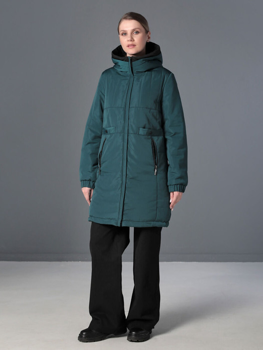 Удлиненная куртка-парка прямого силуэта с втачными рукавами подходит для женщин и девушек любой  возрастной категории. Застежка на двухзамковую молнию позволяет регулировать ширину парки внизу при подъеме и ходьбе. Воротник -  стойка, переходящая в капюшон. Низ втачного рукава оформлен манжетой с эластичной тесьмой, что способствует удержанию тепла внутри куртки. Две пары прорезных карманов, удобно расположеные в швах, застегиваются либо на кнопку, либо на молнию. Есть внутренний кармашек на молнии. Плащевая ткань, из которой выполнено изделие, имеет водоотталкивающую пропитку, выдерживающую небольшой  дождь, снег и ветер. Хорошо зарекомендовавший себя утеплитель "Холлофайбер", плотностью 200гр/м, защитит от холода.