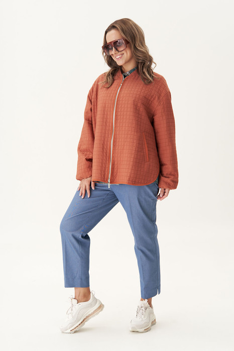 В теплые весенние дни красотки смело могут примерять на себя легкие куртки-ветровки. Это абсолютно универсальная вещь и не просто обязательный элемент базового гардероба, но и настоящий тренд. Уютный оверсайз-силуэт поможет сделать ваш образ максимально утонченным и хрупким. Покрой рубашечный, застежка центральная на тесьму-молнию, воротник стойка. Полочка с прорезными карманами с листочками. Рукав на эластичной тесьме по низкам. Низ изделия фигурный с разрезами по боковым швам. По срезу борта, низу изделия и карманам – отделочный кант. Ветровка без утеплителя, на подкладке.