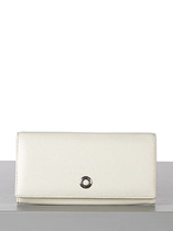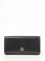 Кошелек женский выполнен из натуральной кожи. Детали: хлястик на копке, 1 отделение для купюр, 1 отделение на молнии для мелочи, 9 отделений для визиток или карт, 2 скрытых кармана. Фурнитура серебристого цвета. Упаковка: фирменная белая коробка.