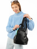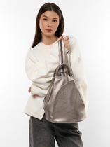 Рюкзак женский выполнен из экокожи. Детали: 2 укреплённые стропой регулируемые ручки по 85 см, маленькая ручка для держания в руке. Внутри изделия: 1 основное отделение на молнии, 2 открытых кармана, 1 карман для мобильного телефона и 2 кармана на молнии. Снаружи изделия: 1 карман на оборотной стороне на молнии и 1 карман спереди на молнии. Брендированная подкладка из хлопка. Металлическая брендированная фурнитура золотистого цвета. В комплекте фирменный пыльник.
