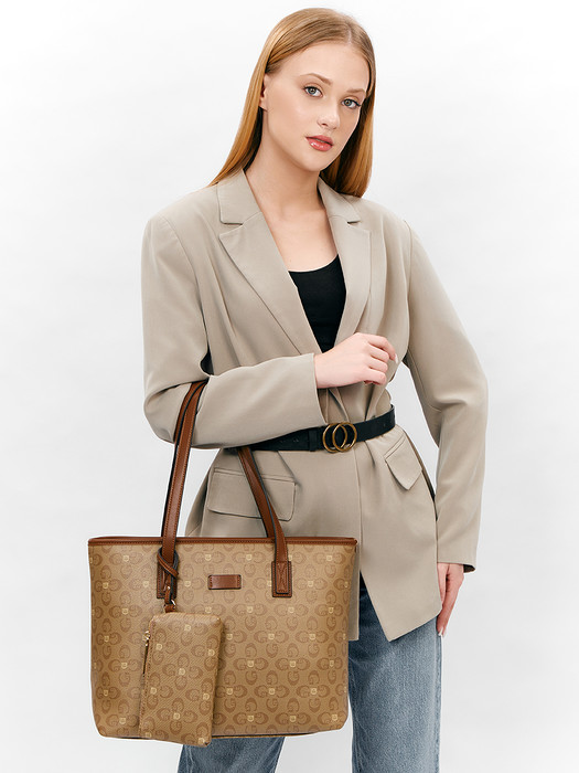 Сумка женская выполнена из экокожи. Детали: 2 ручки по 60см. Дополнительная сумочка на 1 отделение на молнии на съёмном длинном ремешке и кошелек на 1 отделение на молнии. Внутри изделия: 2 отделение на молнии разделены перегородкой в виде кармана на молнии, 1 карман на молнии, 1 карман открытый. Снаружи изделия: 1 карман на оборотной стороне на молнии. Брендированная подкладка из хлопка. Металлическая брендированная фурнитура золотистого цвета. В комплекте фирменный пыльник.