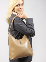 Сумка женская выполнена из натуральной кожи. Детали: 2 ручки 60 см. Каркас сумки: мягкий. Сумка на ножках. Застежка: молния. Внутри изделия: 1 отделение, 1 карман на молнии, 1 открытый карман. Снаружи изделия: 1 карман на молнии спереди. Подкладка из хлопка. Металлическая брендированная фурнитура черного цвета. В комплекте фирменный пыльник для хранения сумки.