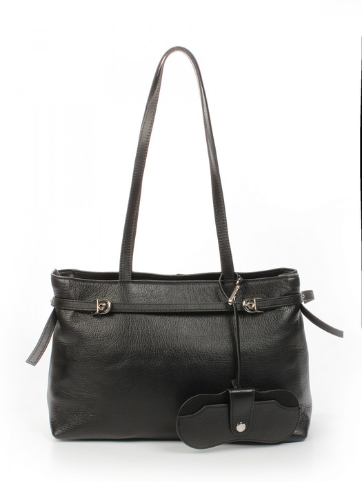 Сумка женская выполнена из натуральной кожи. Детали: 2 ручки 60 см. Внутри изделия: 1 отделение, закрываемое на молнию, и 2 дополнительных отделения на магнитной кнопке, 1 карман на молнии, 1 открытый карман. Плотная подкладка из хлопка. Металлическая брендированная фурнитура серебристого цвета. В комплекте фирменный пыльник для хранения сумки.