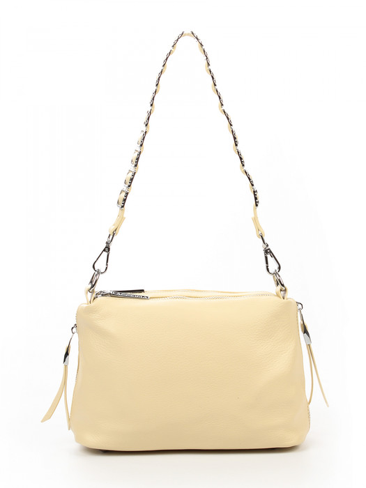 Сумка женская выполнена из натуральной кожи. Детали: 1 ручка 55 см, 1 регулируема ручка от 110 см до 135 см. Каркас сумки: мягкий. Фактура кожи: зернистая. Застежка: молния. Внутри изделия: 2 отделения, 1 карман на молнии, 2 открытых кармана. Снаружи изделия: карман на молнии сзади. Подкладка из хлопка. Металлическая брендированная фурнитура серебристого цвета. В комплекте фирменный пыльник для хранения сумки.