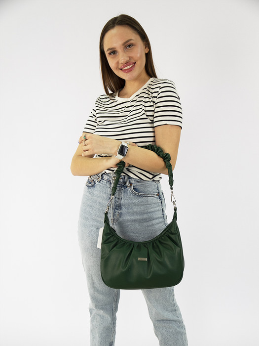 Сумка женская выполнена из экокожи. Детали: 1 нерегулируемая съёмная ручка на плечо 45см, 1 длинная регулируемая ручка 135 см. Внутри изделия: 2 отделения на молнии разделены перегородкой в виде кармана на молнии, 1 карман на молнии, 1 открытый карман. Брендированная подкладка из хлопка. Металлическая брендированная фурнитура серебристого цвета. В комплекте фирменный пыльник.