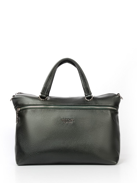 Сумка женская выполнена из экокожи. Детали: 2 короткие ручки по 36 см, 1 длинный ремешок на плечо 130 см. Внутри изделия: 1 отделение на молнии, 1 карман для документов на молнии, 1 открытый карман, 1 карман для мобильного телефона и 1 карман на молнии. Снаружи изделия: 1 карман на оборотной стороне на молнии и 1 большой карман спереди изделия. Брендированная подкладка из хлопка. Металлическая брендированная фурнитура серебристого цвета. В комплекте фирменный пыльник.