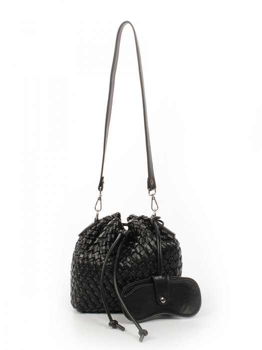 Сумка плетеная выполнена из экокожи. Детали: 1 ручка 70 см, 1 регулируемая ручка от 110 см до 125 см. Сумка имеет 1 отделение, закрываемое на стяжку. Металлическая брендированная фурнитура серебристого цвета. В комплекте фирменный пыльник для хранения сумки, чехол для очков, косметичка. Внутри косметички: 1 отделение на молнии, 1 карман на молнии, 1 открытый карман. Особенности косметички: брендированная подкладка из хлопка, брендированная фурнитура серебристого цвета.