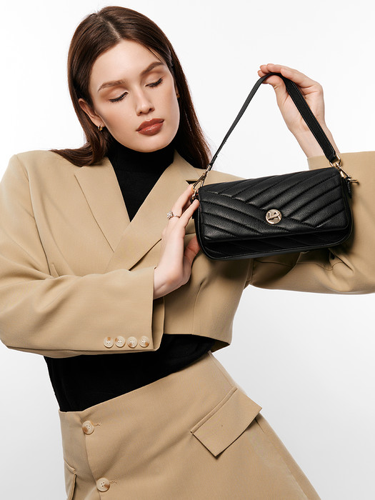 Сумка женская выполнена из экокожи. Детали: 1 съёмная короткая ручка 40см, 1 съёмная длинная регулируемая ручка 70-135см. Внутри изделия: под клапаном на магнитной кнопке 1 отделение, 1 карман на молнии. Брендированная подкладка из хлопка. Металлическая брендированная фурнитура золотистого цвета. В комплекте фирменный пыльник.