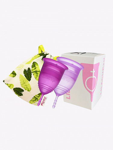 Набор их 2-х менструальных чаш LilaCup Duo box plus S + L в сиреневом и фиолетовом расцветках.