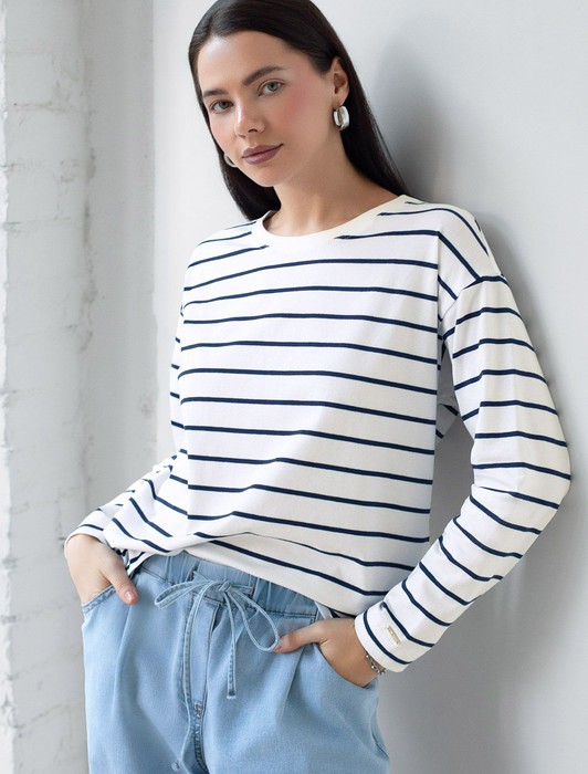 Совместные покупки Уфа Женская одежда Джемперы, свитеры, водолазки — Лонгслив в полоску из премиального хлопка с эластаном