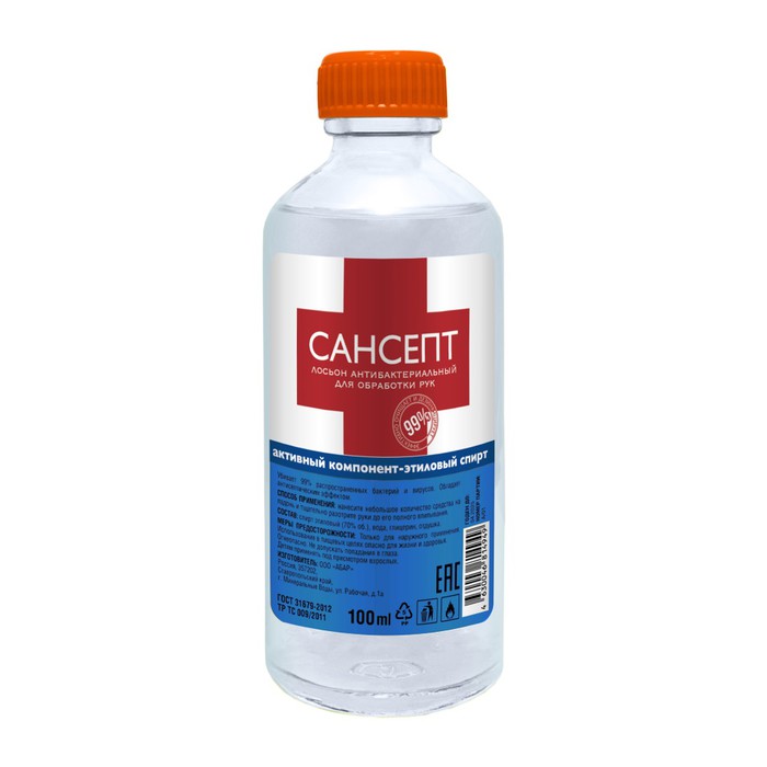 Совместные покупки Уфа Косметика и парфюмерия Прочее — Лосьон антибактериальный для обработки рук Сансепт, 100мл стекло