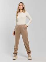 M071 BEIGE Брюки спортивные женские на флисе (100% хлопок)