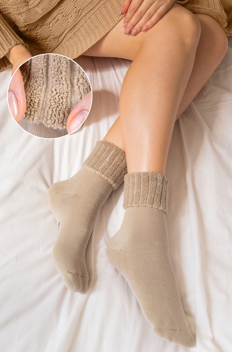 Женские махровые носки с отворотом созданы, чтобы дарить комфорт в прохладные осенние и зимние дни. Теплые носки не просто согреют, но и добавят капельку игривого настроения в любой ненастный день.