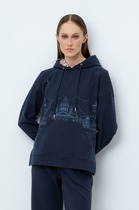 Vilatte Свободный свитшот с принтом и разрезами из эластичного футера двухнитки