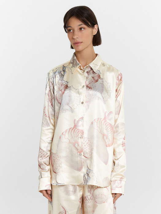 Блузка женская прямого силуэта из сатиновой ткани. Горловина круглой формы, в горловину втачан стояче-отложной воротник. Центральная застежка на пуговицы.