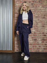Посадка средняя. Пояс отрезной, внутрь пояса застрочена эластичная тесьма и шнур. По поясу идут две декоративные строчки.  Боковые швы перенесены вперед. На передних деталях накладные карманы с наклонным входом от боковых швов. По низу изделия внутрь застрочена эластичная тесьма.