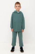 Брюки для мальчиков, прямого силуэта. Пояс цельнокройный с втачной эластичной тесьсьмой. Пояс прострочен двумя отделочными строчками. По переду обработаны карманы в швах. Низ брюк обработан швом в подгибку на двухигольной плоскошовной машине.