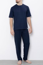 Брюки для дома, отдыха и спорта из трикотажного полотна. Облегание свободное, длина классическая. Штанины на манжетах. Внутренние карманы на подкладке. Широкий пояс с эластичной тесьмой и регулировочным шнуром. Комфортная модель!