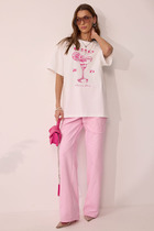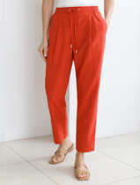 Брюки прямые, свободные. Посадка высокая.Пояс отрезной состоит из двух частей. Задняя часть с эластичной тесьмой внутри. В боковых швах обработаны карманы. На правой передней половинке проложена декоративная строчка - имитация гульфика. На передних и задних половинках заутюжены стрелки. Нижние срезы брюк обработаны швом вподгибку