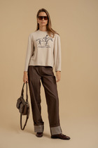 Пояс брюк оформлен практичным шнурком с аккуратными узелками для регулировки посадки. В боковых швах расположены удобные карманы с мягкой подкладкой из кулирки. Натуральный хлопок мягко заботится о вашей коже, обеспечивая воздухообмен и сохраняя комфорт на протяжении всего дня. Эти брюки станут гармоничным дополнением как для повседневных образов с футболками и свитшотами, так и для более элегантных луков.