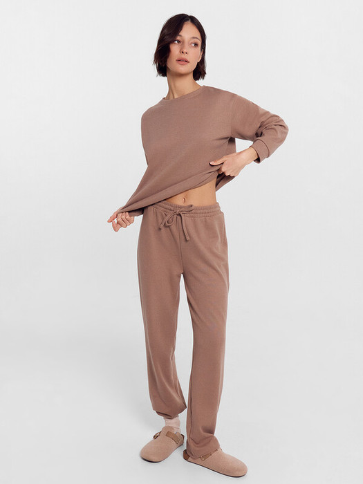 Уют, комфорт и нежность — все это вы найдете в этих домашних женских брюках прямого силуэта из трикотажного полотна. Они созданы специально для сна и отдыха, чтобы вы могли наслаждаться моментами дома с максимальным комфортом. Высокая талия обеспечивает надежную посадку, дарит ощущение уверенности и комфорта. Пояс с эластичной тесьмой внутри и регулировочным шнуром. Сиденье слегка спущено. Неважно, смотрите ли вы фильм дома, читаете книгу, просто готовите, или занимаетесь спортом, эти брюки обеспечат вам необходимую свободу движений и уют. Они идеальны для домашней коллекции и станут незаменимым элементом женского гардероба. Сочетайте их с легкими топами или футболками, чтобы создать непринужденный и модный образ в домашней обстановке. Позвольте себе окунуться в атмосферу уюта с этими домашними брюками. Рекомендуем!