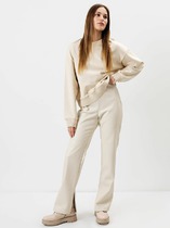 Брюки с посадкой на талии свободного силуэта. Пояс цельнокроеный с резиной внутри 20RV. По центру пояса пробиты петли, протянута бейка из основного полотна. На передних деталях карманы «хулиганы». Низ изделия застрочен швом в подгибку.