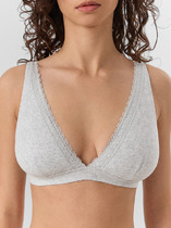Чашка с тройным членением из трикотажного неэластичного полотна арт 440 (гладкий), с отделкой эластичным кружевом. Срезы рельефов с изнаночной стороны обработаны бейкой из монокапрона. По верхнему срезу кружева с изнаночной стороны настрочена эл тесьма 6 мм (жилка тканая Wt4-6, девсел 13460 W).
