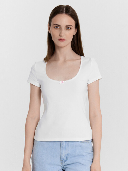 Джемпер прилегающего силуэта. Горловина овальная, глубокая. По краю горловины настрочена эластичная тесьма (с зубом 8 мм (06/08) КТЕ6-8). Рукава втачные короткие. Нижние срезы джемпера и рукавов обработаны швом вподгибку.