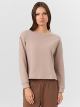 Джемпер женский свободного силуэта из трикотажного полотна кулирка и рибана. Горловина круглой формы, обтачка горловины из рибаны. Плечо спущено, пройма углублена. Рукав втачной, двойной, короткий и длинный. Нижние срезы обработаны швом вподгибку.