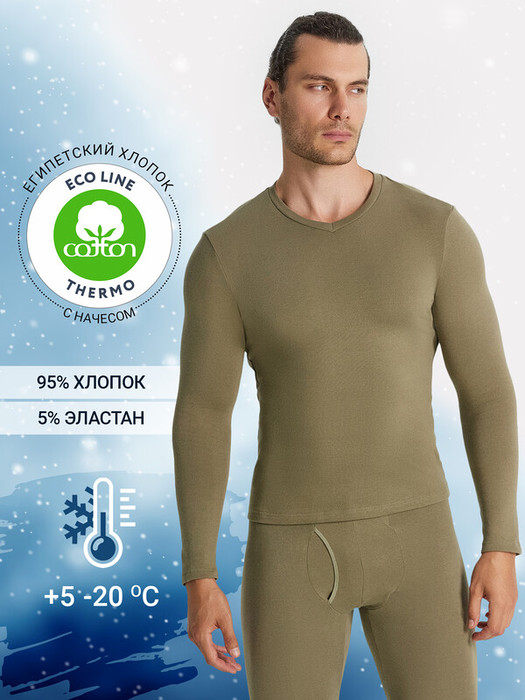 Теплый лонгслив с V-образной формой горловины и длинными рукавами. Для тех, кто уделяет особое внимание экологически чистой продукции. Идеально подходит для людей с чувствительной кожей, гигроскопично. Теплое белье Mark Formelle изготовлено из высококачественного длинноволокнистого египетского хлопка по специальной технологии, гарантирующей комфорт и отличные теплоизоляционные свойства.