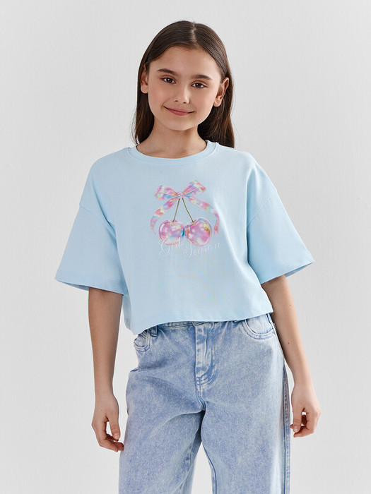 Футболка прямого силуэта укороченная. Перед и спинка цельнокроенные.