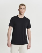 Футболка мужская свободного силуэта из трикотажного полотна кулирка. Горловина круглой формы, обтачка из рибаны. По горловине проложена отделочная строчка. Бейка по горловине спинки из кулирки. Рукав втачной, короткий.