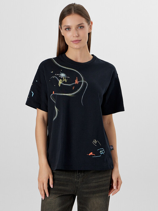 Женская футболка свободного силуэта - это прекрасный выбор для создания стильного и комфортного образа. Модель выполнена из нежной хлопковой кулирки, гарантирующей мягкость и отличную воздухопроницаемость. Круглый вырез и спущенная линия плеча обеспечивают свободу движений, а широкие рукава, чуть выше локтя, добавляют легкости и непринужденности. Эта стильная футболка станет базовым элементом вашего гардероба, идеально сочетающимся с различными нарядами и подходящим для любого случая.