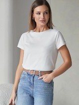Нижние срезы футболки и рукавов обработаны швом вподгибку.