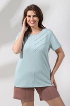 Эта женская футболка станет незаменимой базовой моделью в вашем гардеробе. Прямой и свободный крой обеспечивает комфорт и свободу движений. Круглая форма горловины и короткие рукава делают её универсальной и подходящей для любого случая. Изделие выполнено из хлопковой кулирки, гарантирующей мягкость и приятное ощущение на коже. Эта футболка идеально сочетается с различными элементами гардероба, создавая стильные и удобные образы на каждый день.