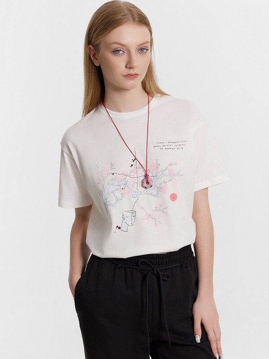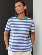 Футболка прямая, свободная. Горловина круглой формы обработана бейкой в 3 сложения из основного полотна. Рукава втачные, корткие. Нижние срезы футболки и рукавов обработаны швом вподгибку.