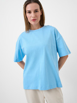 Эта женская футболка оверсайз из кулирки станет отличным дополнением вашего гардероба. Горловина круглой формы, спущенное плечо и углубленная пройма создают стильный и комфортный образ. Широкий рукав длиной чуть выше локтя добавляет непринужденности и комфорта. Изделие выполнено из нежной хлопковой кулирки — материала, обладающего отличной воздухопроницаемостью, позволяющего коже дышать и сохранять свежесть в течение всего дня. Кулирка также невероятно мягкая и приятная на ощупь, что обеспечивает комфорт при носке. Такая футболка станет идеальным выбором для повседневной носки, гарантируя стильные и уютные образы каждый день.