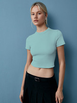Футболка прилегающего силуэта. Горловина круглой формы обработана обтачкой из основного полотна. Рукава втачные, короткие. Нижние срезы футболки и рукавов обработаны швом вподгибку.