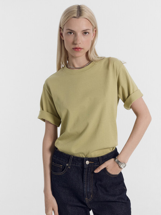Нижние срезы футболки и рукавов обработаны швом вподгибку.