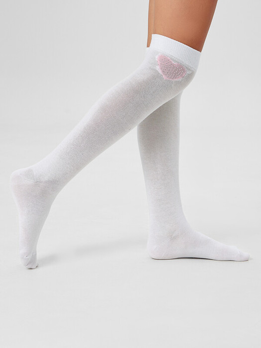 Рис.3335 Детские однотонные гольфы c рисунком в виде сердечка и печатью стразами.