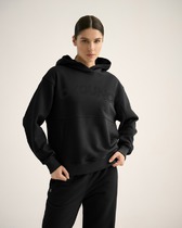 Худи выполнено из футера с начесом — плотного трикотажа с мягким внутренним ворсом. Состав из хлопка и полиэстера сочетает натуральность и прочность: хлопок обеспечивает воздухообмен и приятные тактильные ощущения, а полиэстер сохраняет форму изделия после множества стирок.