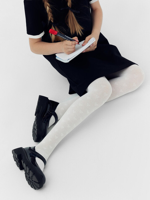 Рис.1660 Гладкие колготки с рисунком в виде сердечек сетки по всей колготке.