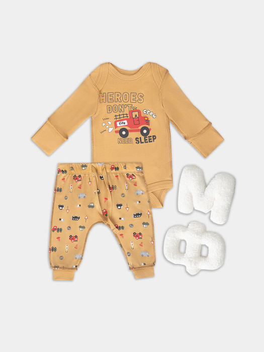 Детский комплект, состоящий из боди и ползунков, выполнен из мягкого интерлока, который обеспечивает комфорт и нежное прикосновение к коже малыша. Швы расположены на лицевой стороне изделия, что делает его особенно деликатным и безопасным для чувствительной детской кожи. Боди имеет круглую горловину, окантованную бейкой из основного материала, и длинные рукава, обеспечивающие тепло и удобство. Застежка на кнопки позволяет легко переодевать ребенка, не причиняя дискомфорта. Ползунки с открытыми ножками не ограничивают движения, а эластичный пояс мягко фиксируется на талии. Манжеты из трикотажной рибаны по низу изделия обеспечивают хорошую посадку и сохраняют форму. Комплект идеально подходит для ежедневного ношения, сочетая в себе практичность, комфорт и заботу о малыше.