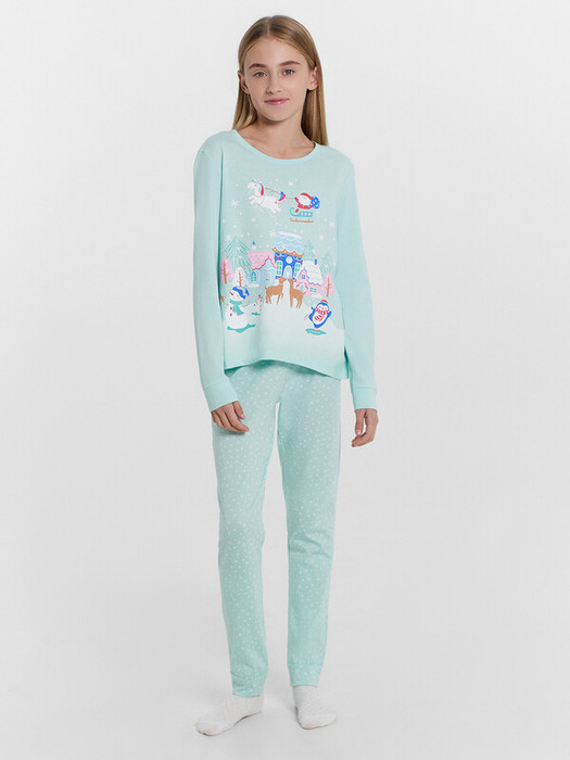 Совместные покупки Уфа Детская одежда Пижамы, одежда для сна — Mark Formelle КОМПЛЕКТ ДЛЯ ДЕВОЧЕК (ДЖЕМПЕР, БРЮКИ) 567720 567720 иней +белые сн