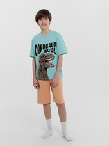 Перед и спинка джемпера цельнокроеные. Вырез горловины круглый, обработан притачной обтачкой из бейки. Рукава втачные короткие одношовные. Низ изделия и рукавов обработан швом в подгибку. Брюки длинные. Пояс цельнокроенный с эластичной тесьмой внутри.
