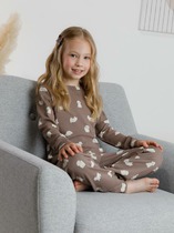 Уютный комплект для девочек, состоящий из джемпера с длинными рукавами и брюк. Джемпер свободного силуэта. Перед и спинка цельнокроеные. Горловина круглой формы из основного полотна. Рукава втачные, низ рукавов с притачными манжетами. Брюки прямые, с притачными манжетами. Пояс с эластичной тесьмой, которая обеспечивает отличную посадку. Стильная и комфортная детская пижама — лучший вариант для прохладного времени года. Широкий размерный ряд, красивые расцветки моделей в линейке. Рекомендуем!
